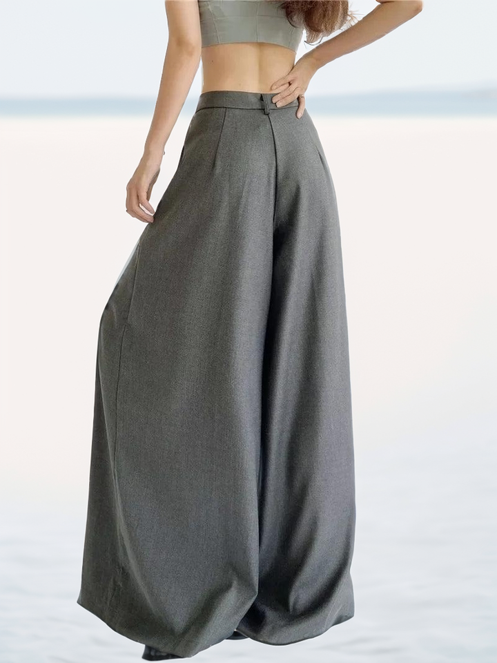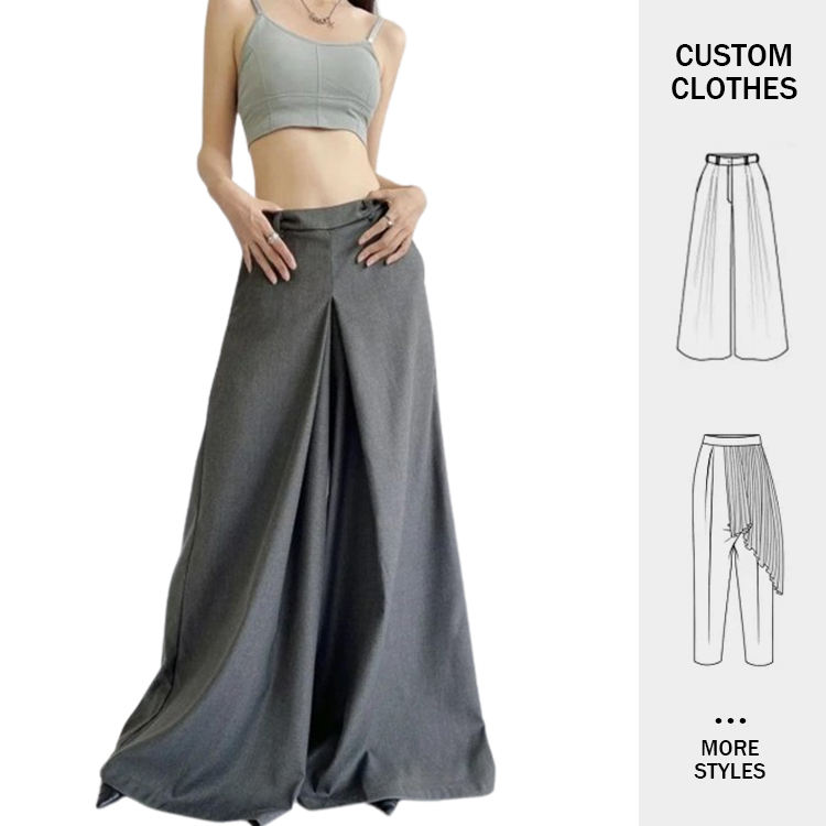 Customized Fashion New Comfortable Casual Cotton Linen Gray Side Zipper Women's Large Size Loose Drag Floor Suit Dress Pants