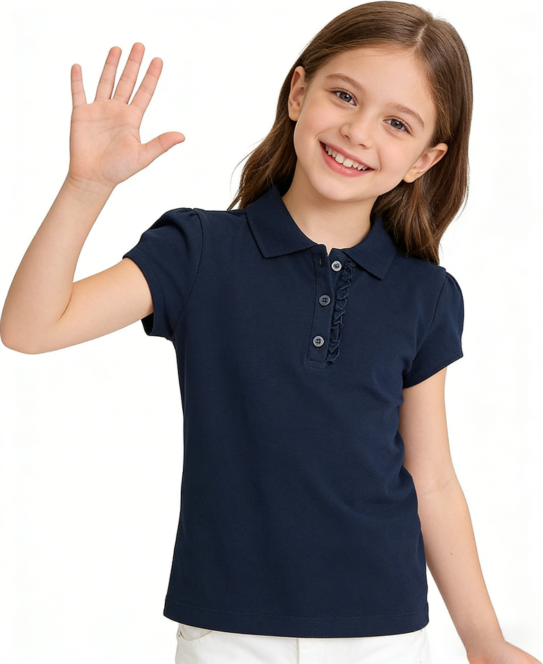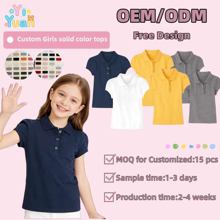 Polo a tinta unita con volant personalizzate per bambine 2-12 anni, top uniformi scolastiche per bambini, magliette polo personalizzate per bambine
