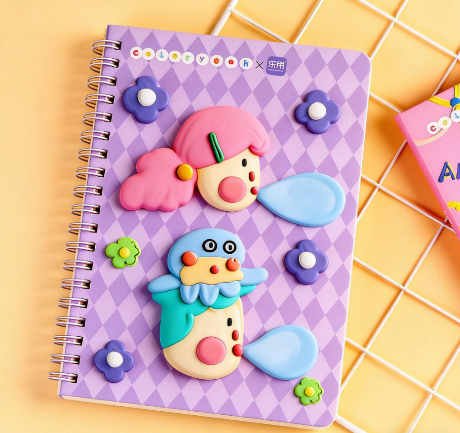 Quaderno Personalizzato con Decorazione Tridimensionale a Griglia e Cartoni Animati, Rilegatura a Spirale Metallica per Studenti e Negozi di Cancelleria