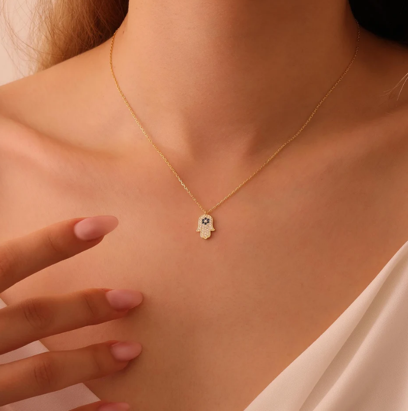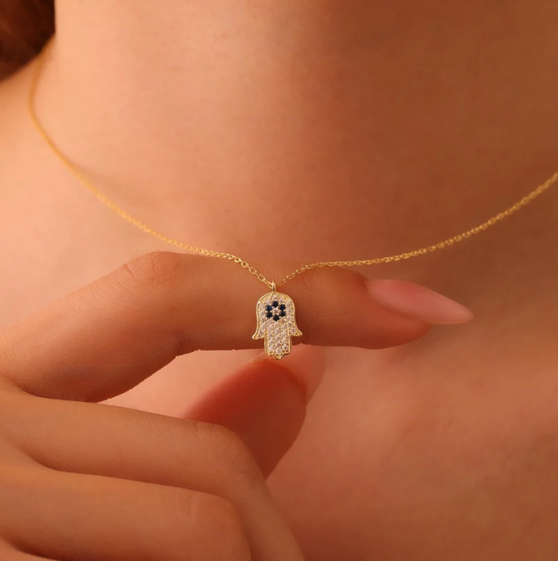 Collana pendente a mano Hamsa personalizzata con pietra del diavolo blu in acciaio inox Hamsa occhi a mano talismano gioielli regalo