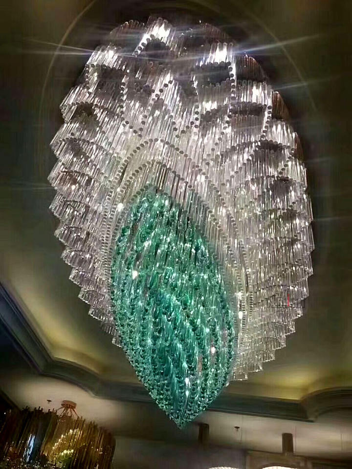 Lampadario grande in vetro a goccia d'acqua fatto a mano personalizzato per l'illuminazione a sospensione a sospensione dell'ingresso dell'ingresso dell'hotel a soffitto alto