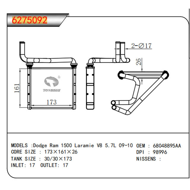 Riscaldatore personalizzato di alta qualità per Dodge Ram 1500 Laramie V8 5.7L 09-10 per il commercio all'ingrosso In Cina fabbrica OEM 68048895AA