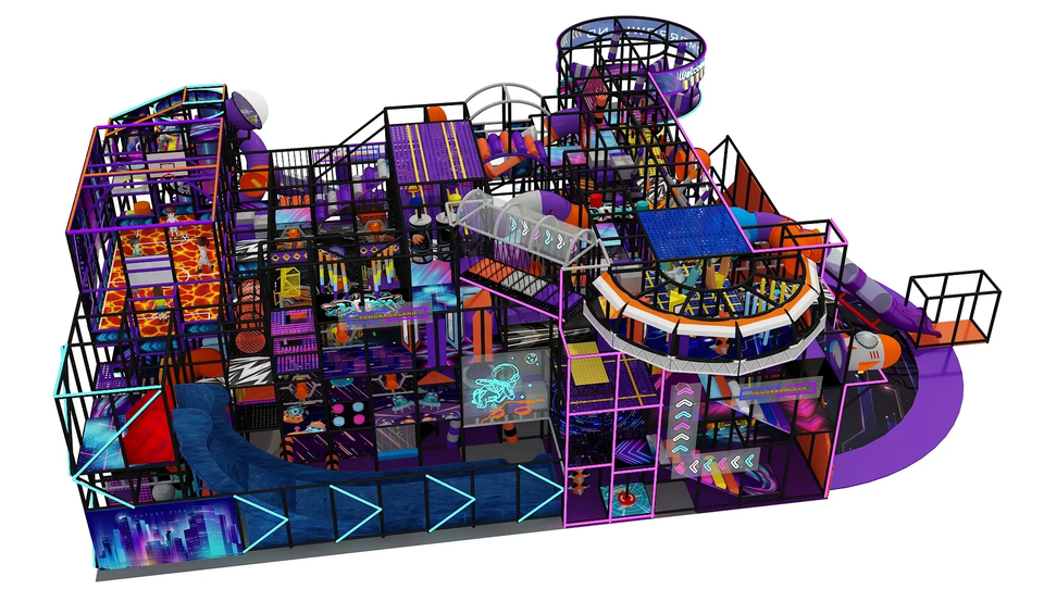 Parco Giochi al Coperto Personalizzato di Alta Qualità con Labirinti Integrati, Trampolini, Varie Scivole, Percorsi Ninja e Altri Elementi per Bambini