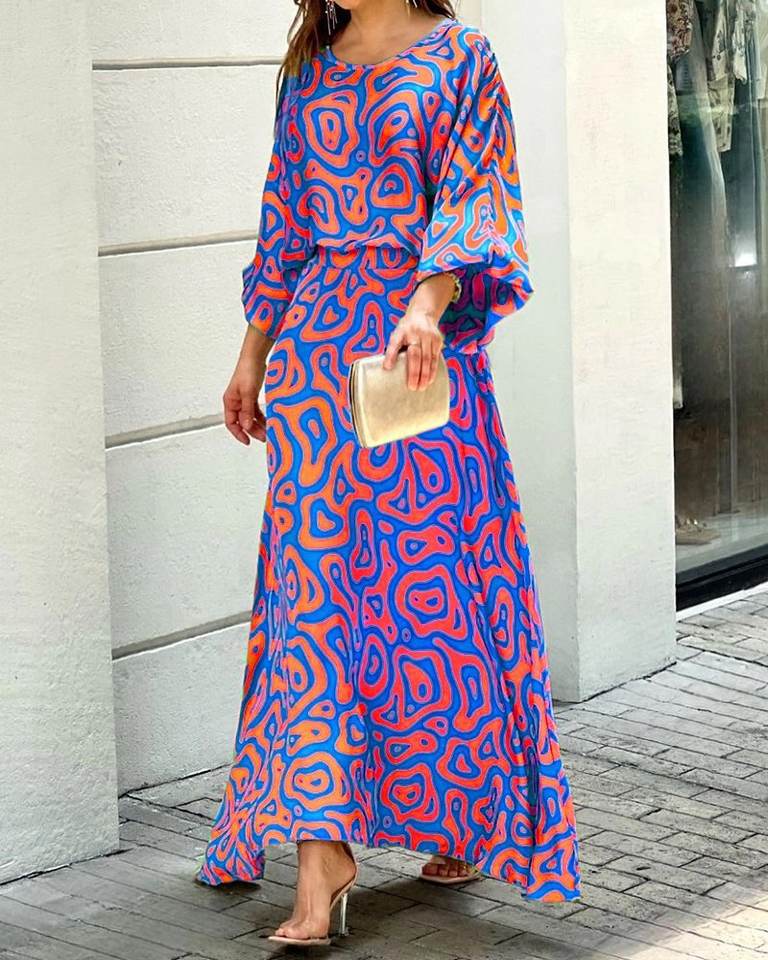 Completo Personalizzato con Gonna Lunga in Chiffon a Vita Alta per Donne, Set Alla Moda con Top a Maniche Lunghe Stampato e Pantaloncini