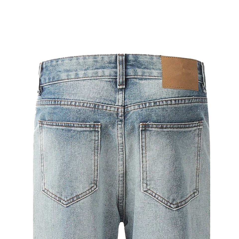 Customized High Waist Men's Light Blue Flared Cargo Pants Spring Autumn Casual Print Jeans with Distressed Washed Style