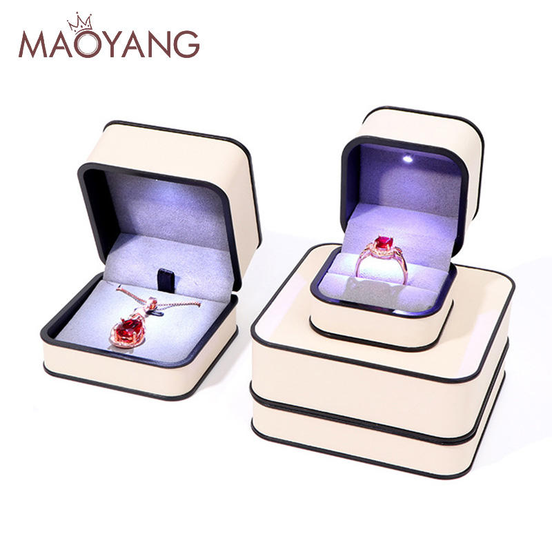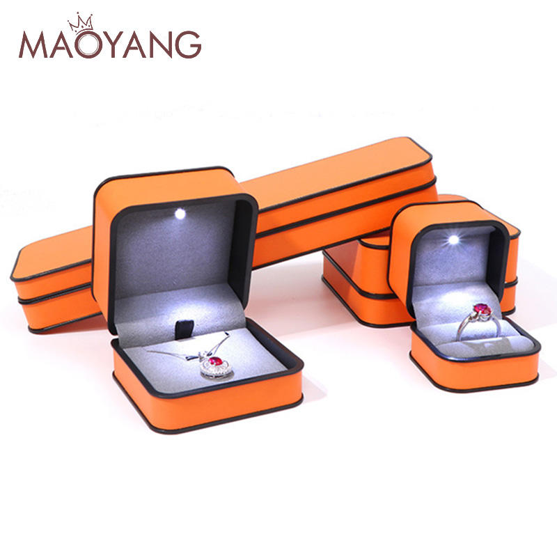 Scatola Personalizzata di Alta Qualità in Pelle PU per Collane, Orecchini, Bracciali e Anelli, Confezione Regalo per Catene Lunghe, Nuove Scatole per Gioielli con Luce LED