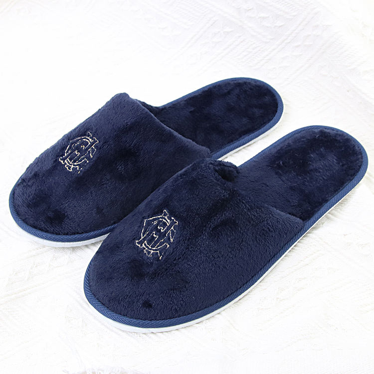 Pantofole personalizzate in stile Hotel Resort per interni con LOGO ricamato con tacco a punta chiusa in velluto corallo pantofole usa e getta
