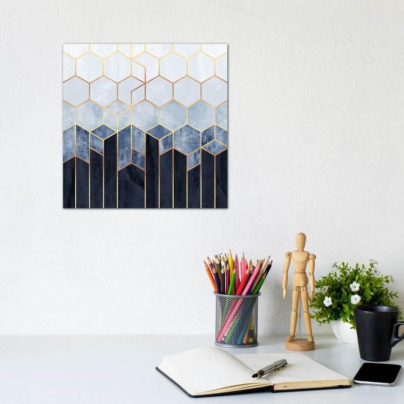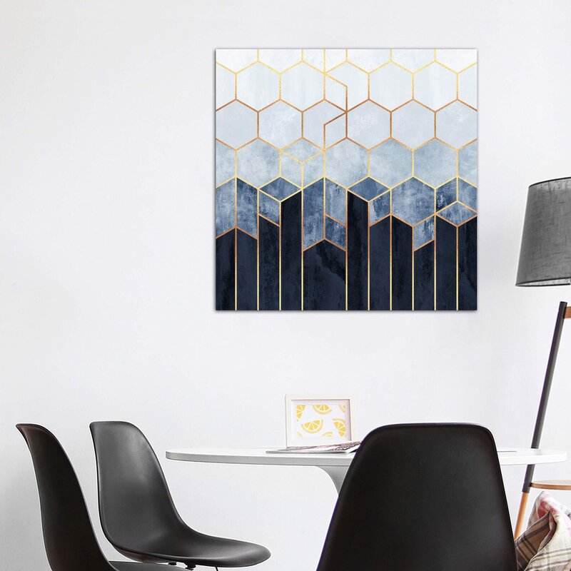 Stampa Artistica Personalizzata per Hotel, Frattali Astratti Geometrici, Esagoni Blu 'Soft Blue Hexagons' di Elisabeth Fredriksson