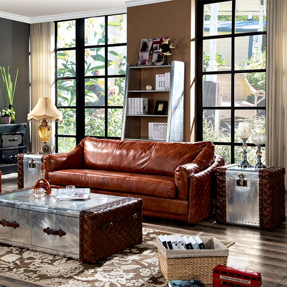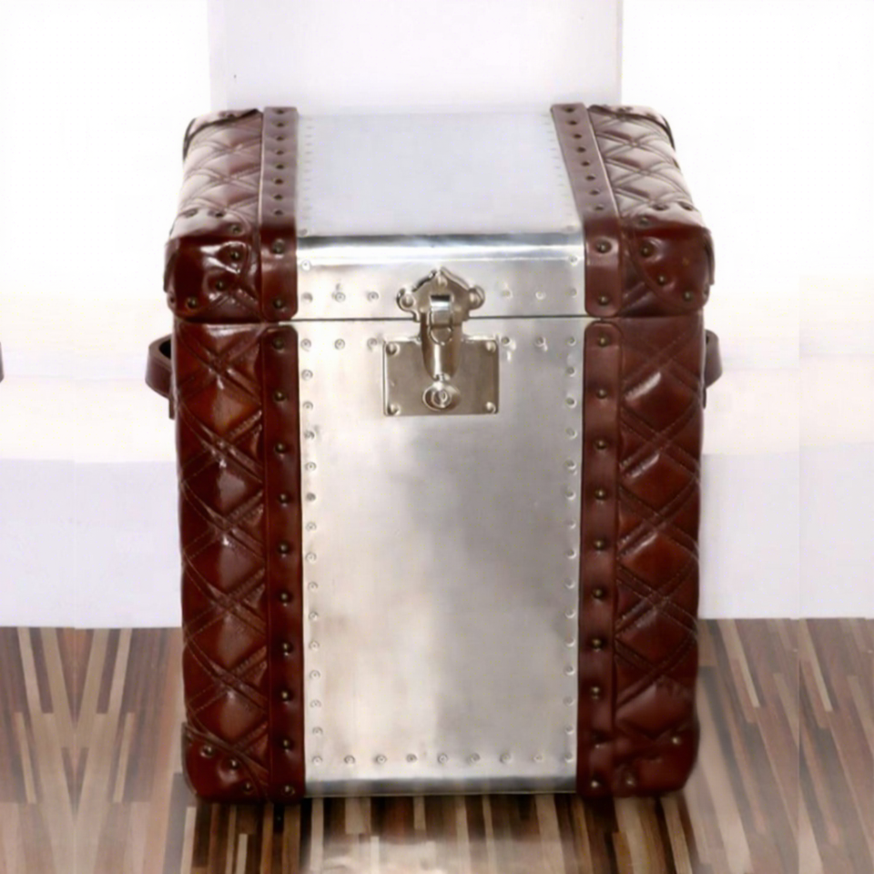 Su misura industriale per il tronco in vera pelle in alluminio antico soggiorno lato del tavolo mobile armadietto ad angolo di stoccaggio della casa