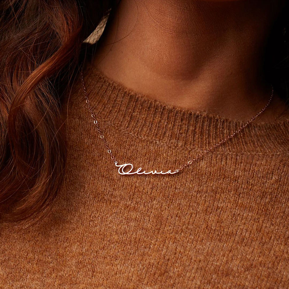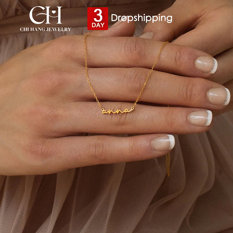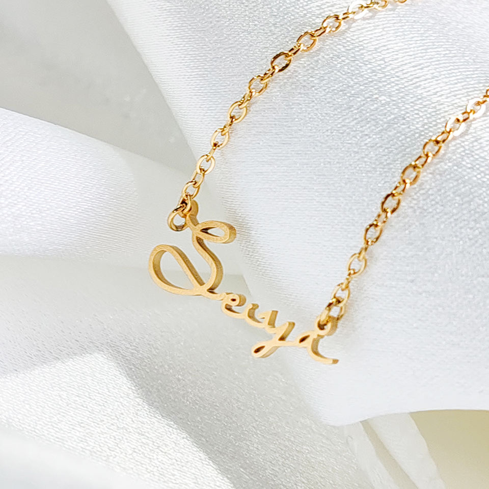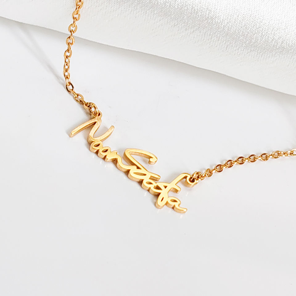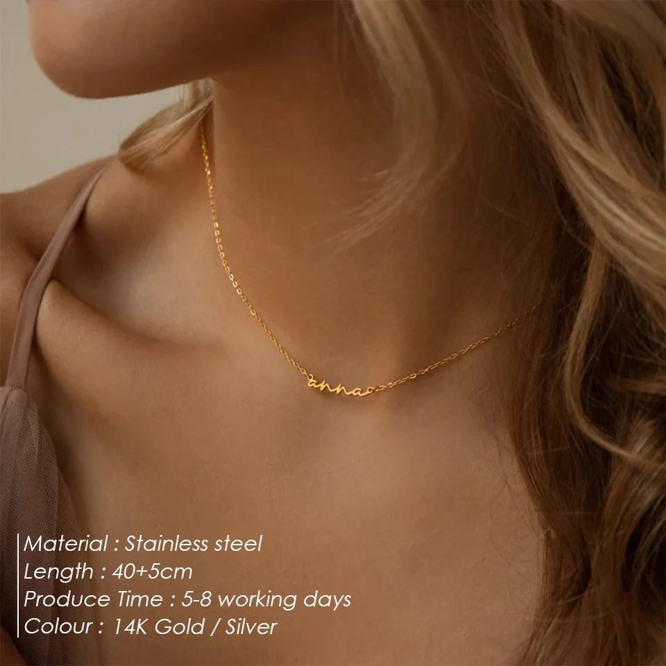 Collana Personalizzata con Iniziale e Nome in Acciaio Inox, Ciondolo Choker a Lettera con Catena a Maglie, Targhetta Idea Regalo in Dropshipping
