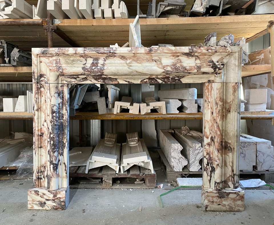 Cornice per Caminetto in Marmo Personalizzata, Decorazione Interna in Marmo Italiano Calacatta Viola
