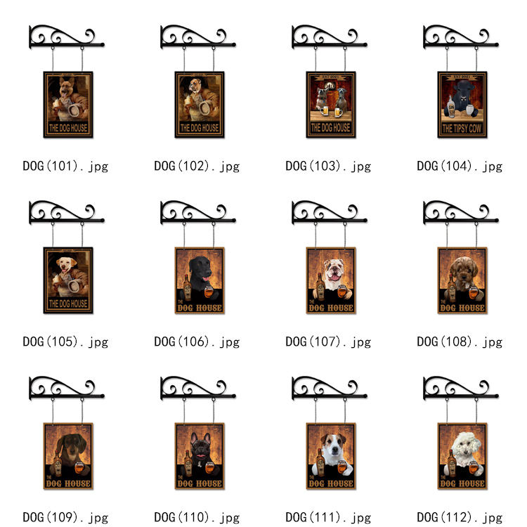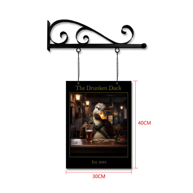 Insegna Personalizzata in Ferro con Rivestimento Nero, Staffa di Sospensione, Cartello Bifacciale per The Dog Inn, Insegna da Parete per Negozi e Corridoi