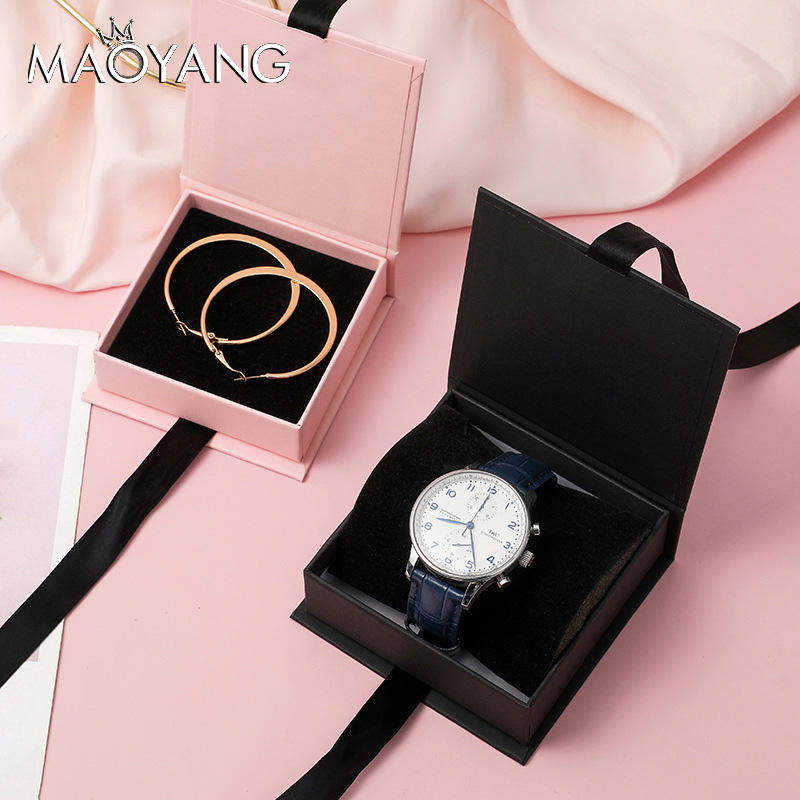 Confezione Regalo Personalizzata per Gioielli, Orologi, Collane e Orecchini, Scatola per Anelli con Nastro e Chiusura a Libro, Portagioie con Logo