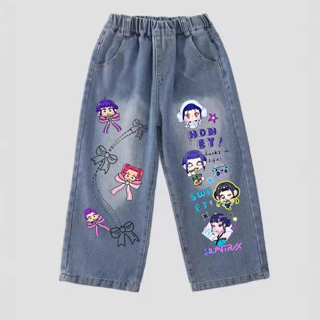 Jeans Personalizzati K-pop "Mystic Witch" Versione Q per Ragazze, Pantaloni a Gamba Dritta e Larga per Primavera, Estate e Autunno