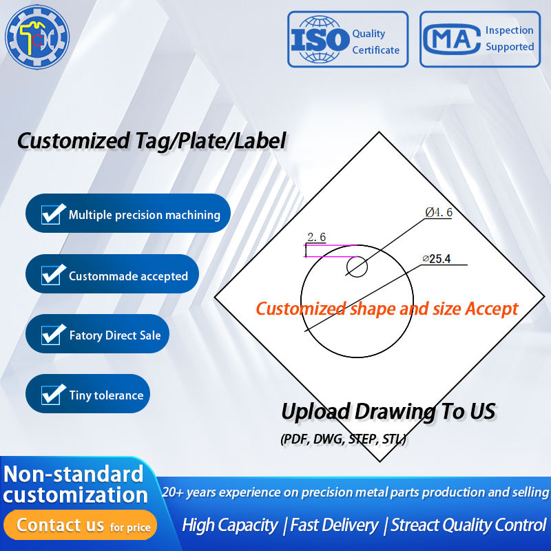 Nome del prodotto:Taglio Laser personalizzato/timbratura appeso Tag in metallo con Logo