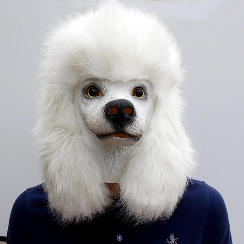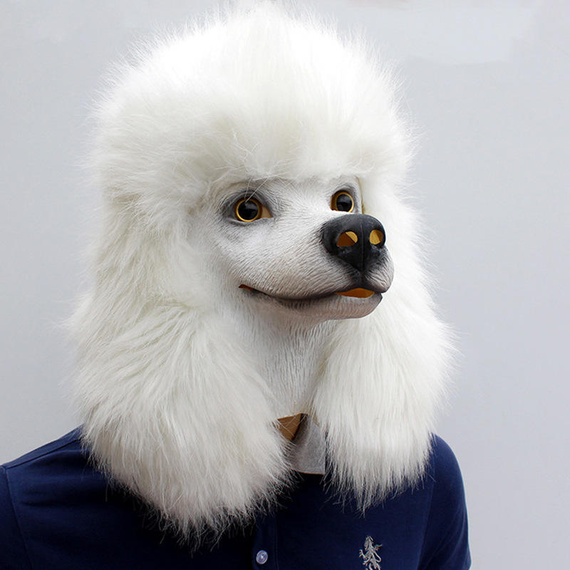 Customized Latex Animal Full Head Mask Deluxe Faux Fur Poodle Dog Cosplay Carnival Masque Costume Mask for Adult
