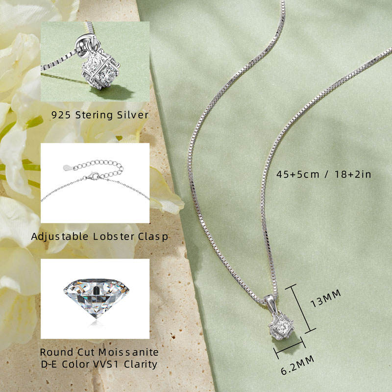 Collana con Pendente Geometrico in Argento 925 Personalizzabile con Logo, Romantico Moissanite Rotondo da 3mm, Regalo per Donne e Ragazze