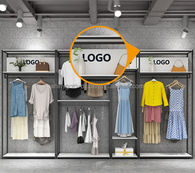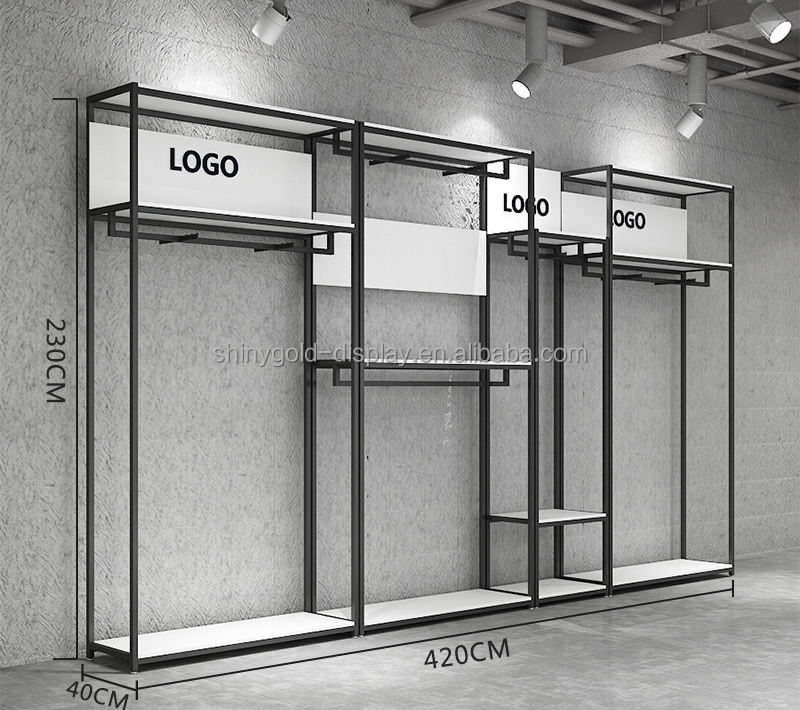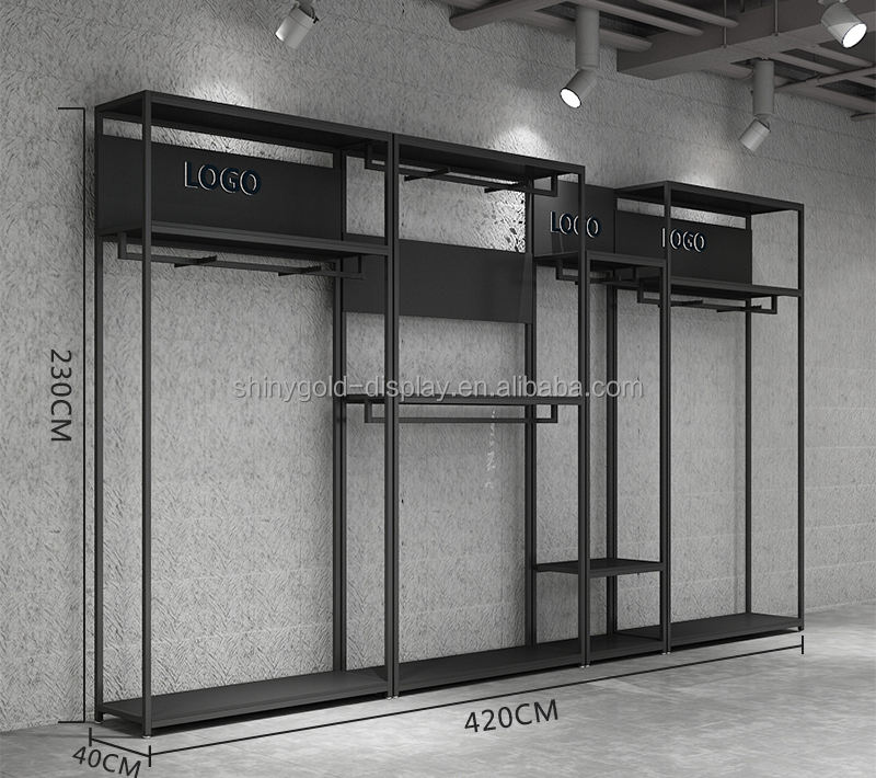 Su misura Logo abbigliamento espositore Stand negozio di moda in metallo nero uomini appendiabiti per bambini espositore scaffali per Boutique