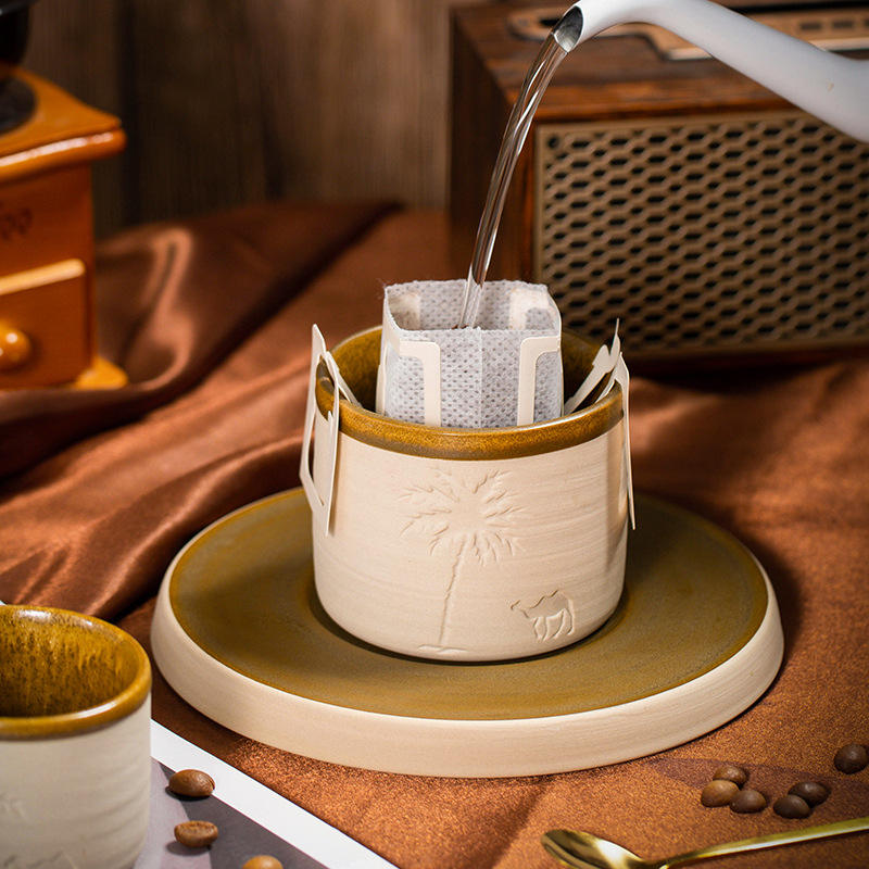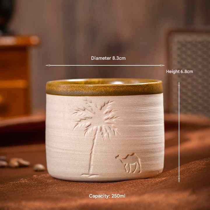 Customized Logo Coconut Palm Tree Middle Eastern Style Clay Espresso Cups Arabic Ceramic Cup Mugs Without Handle