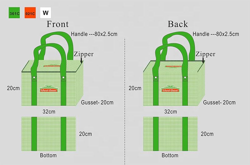 Logo personalizzato durevole 15L eco-friendly isolato pranzo borsa termica con chiusura a cerniera con motivo termico Non tessuto lettera