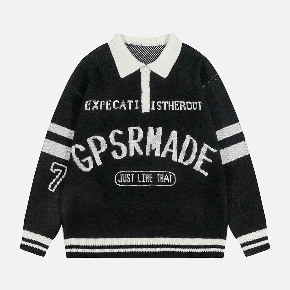Customized Logo Fashion Casual Long Sleeve Polo Collar Letter Pattern Jacquard Knit Men's Pullover Sweater