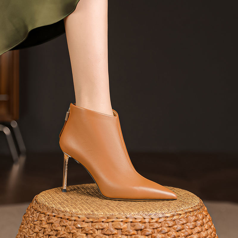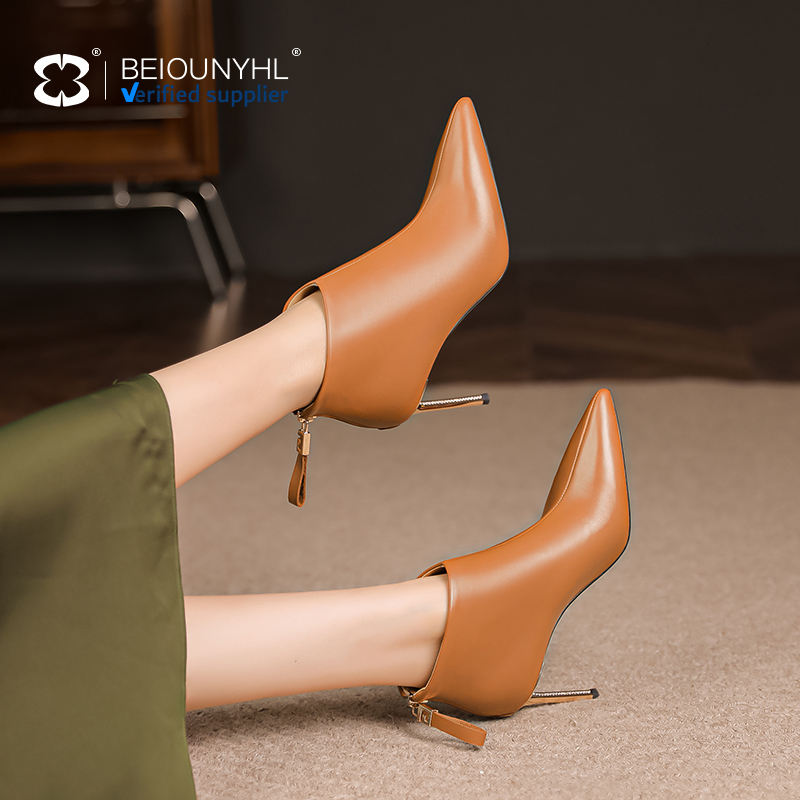 Scarpe da donna invernali con Logo personalizzato stile stile marrone tacco alto stivaletti in vera pelle di alta qualità stivaletti Sexy