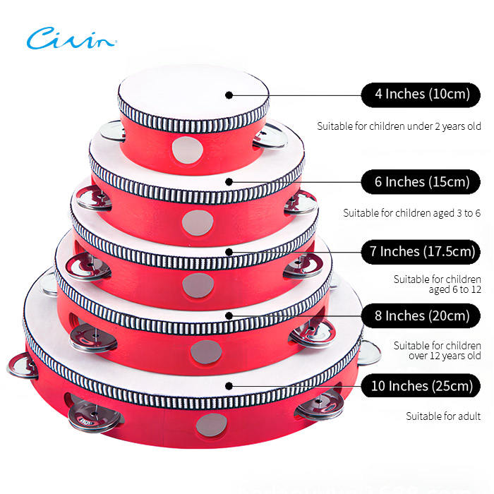 Tamburello da 6 Pollici in Legno con Piattini Zincati di Buona Qualità e Logo Personalizzato, Tamburo a Mano per Matrimoni per Bambini e Adulti