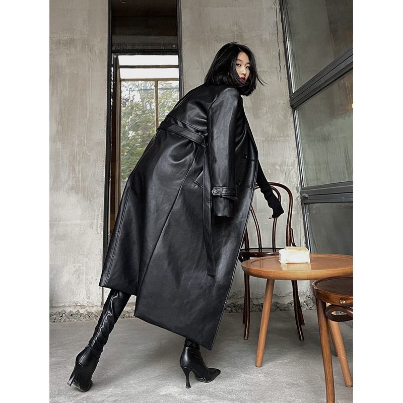 Nuovo Logo personalizzato 2024 Trench in pelle sintetica nera di alta qualità per le donne di lusso in ecopelle Trench soprabiti