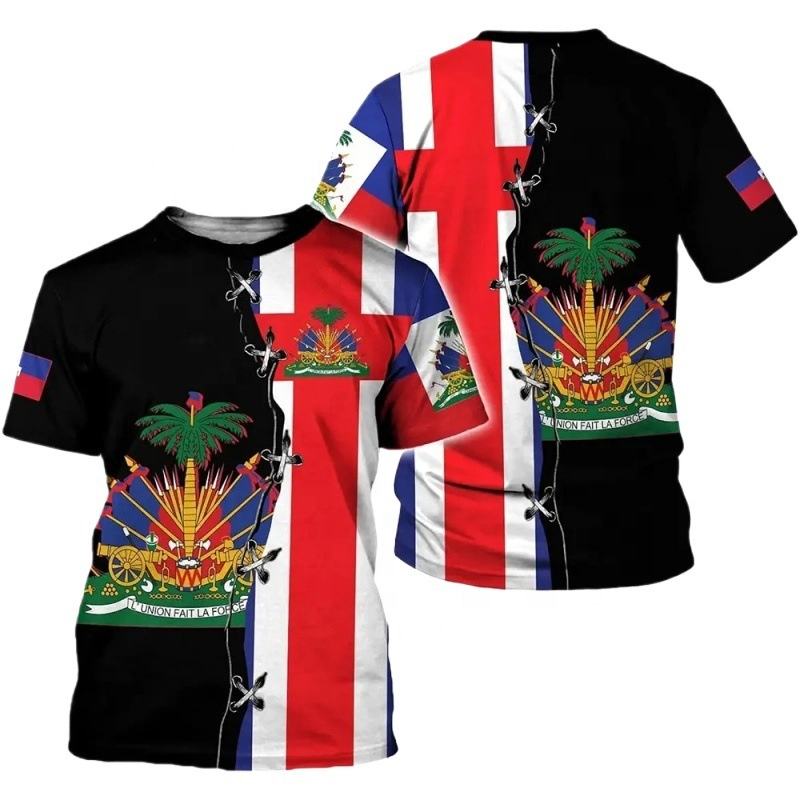 T-shirt a maniche corte in poliestere con stampa logo personalizzata, abbigliamento con bandiera di Haiti, maglia con bandiera di Haiti per uomo