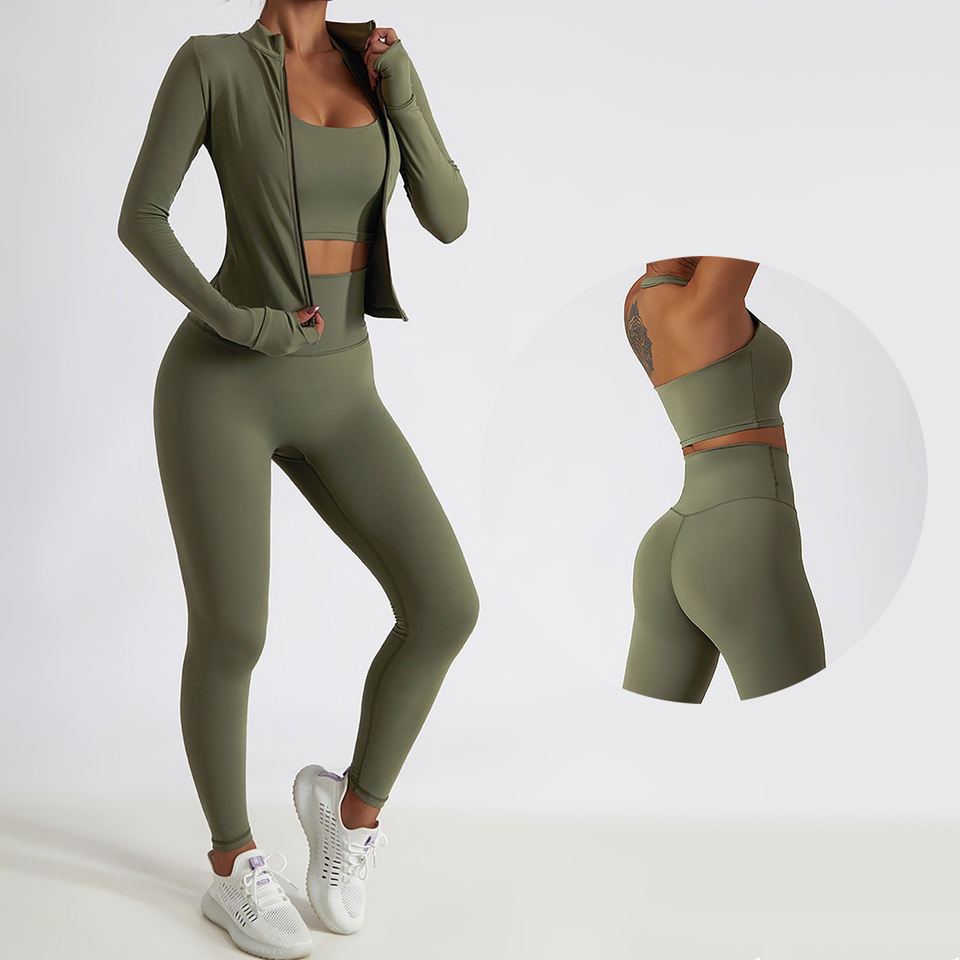 Abbigliamento sportivo sportivo ad asciugatura rapida con Logo personalizzato abbigliamento sportivo abbigliamento sportivo da palestra completo 3 pezzi da donna
