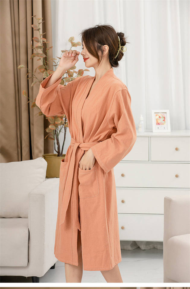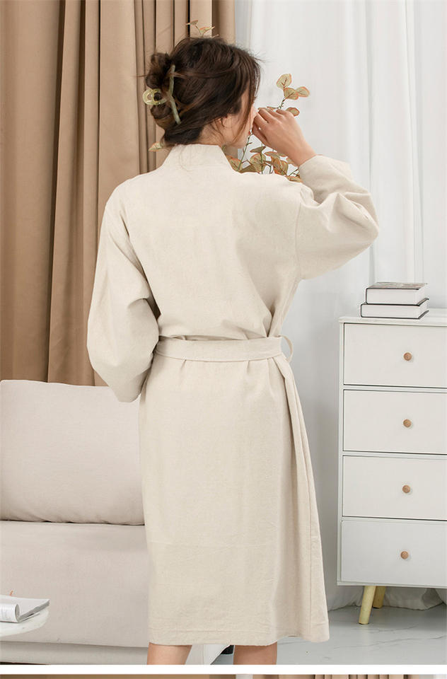 Logo personalizzato estivo sera al ginocchio accappatoio tessuto in cotone di colore naturale lino Hotel Spa avvolgente asciugamano per la casa