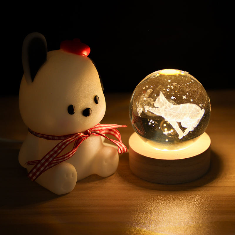 Luci Notturne Personalizzate con Sfera di Cristallo Luminosa a Proiezione, Motivi di Stelle, Pianeti e Lune, Base in Legno per Atmosfera