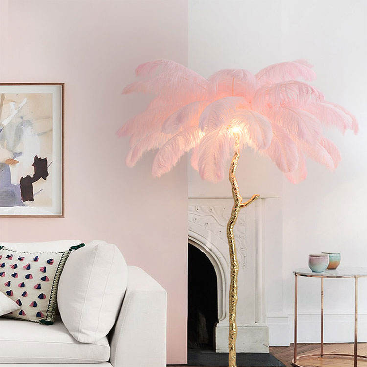 Lampada da terra moderna di lusso personalizzata con LED, decorazione per casa e hotel, illuminazione con supporto in piume di struzzo per l'interior design