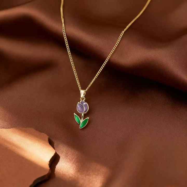 Customized Luxury Non-fading Stainless Steel Flower Tulip Collarbone Chain Necklace 18k Real Gold Plated Enamel Oil Drop Gift