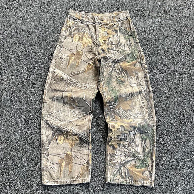 Customized Men's Real Cotton Tree Camo Hunting Pants High Quality Stacked Parachute Carpenter Trousers Casual Canvas Real Custom