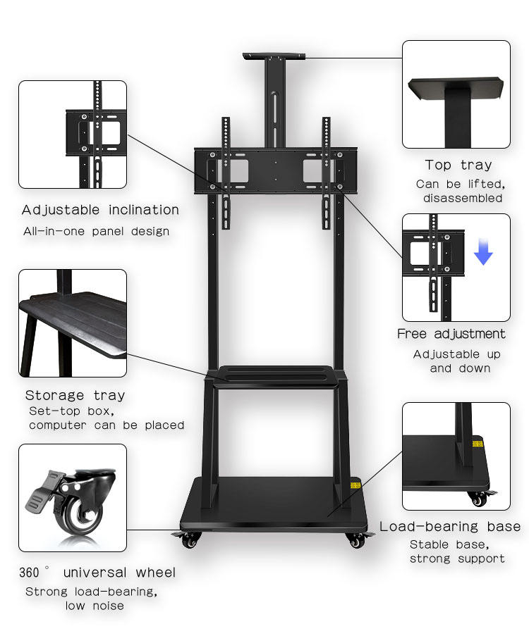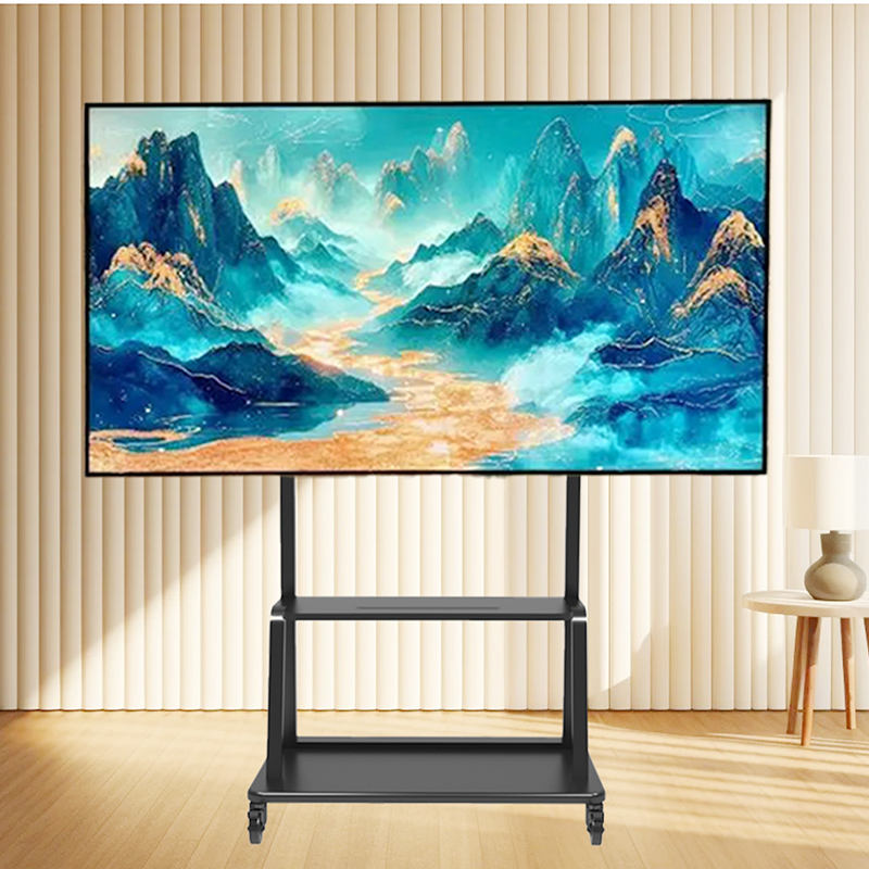 Supporto per Display Interattivo Mobile Personalizzato 65-86 Pollici Carrello Universale con Ruote Bloccabili Scaffale Autoportante in Metallo Carrello per Negozi