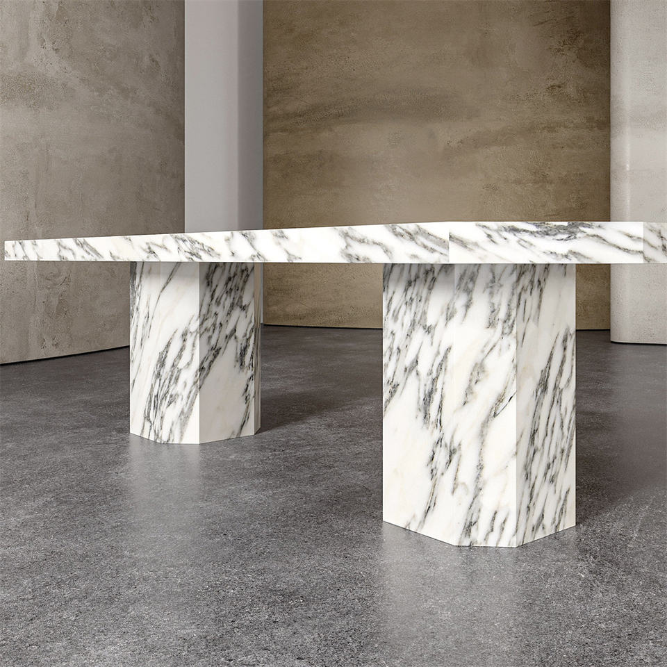 Tavolo da pranzo moderno in marmo bianco Arabescato personalizzato