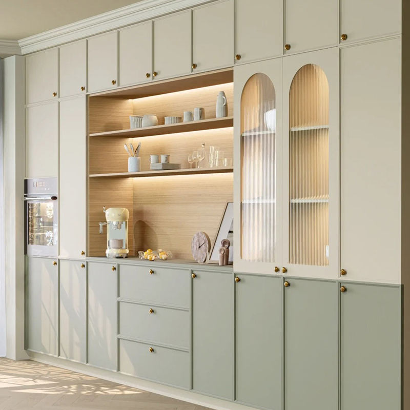 Mobili da Cucina Moderni Personalizzati, Credenza Integrata a Parete in Legno Massello con Finitura Laccata, Personalizzazione Completa per Villa