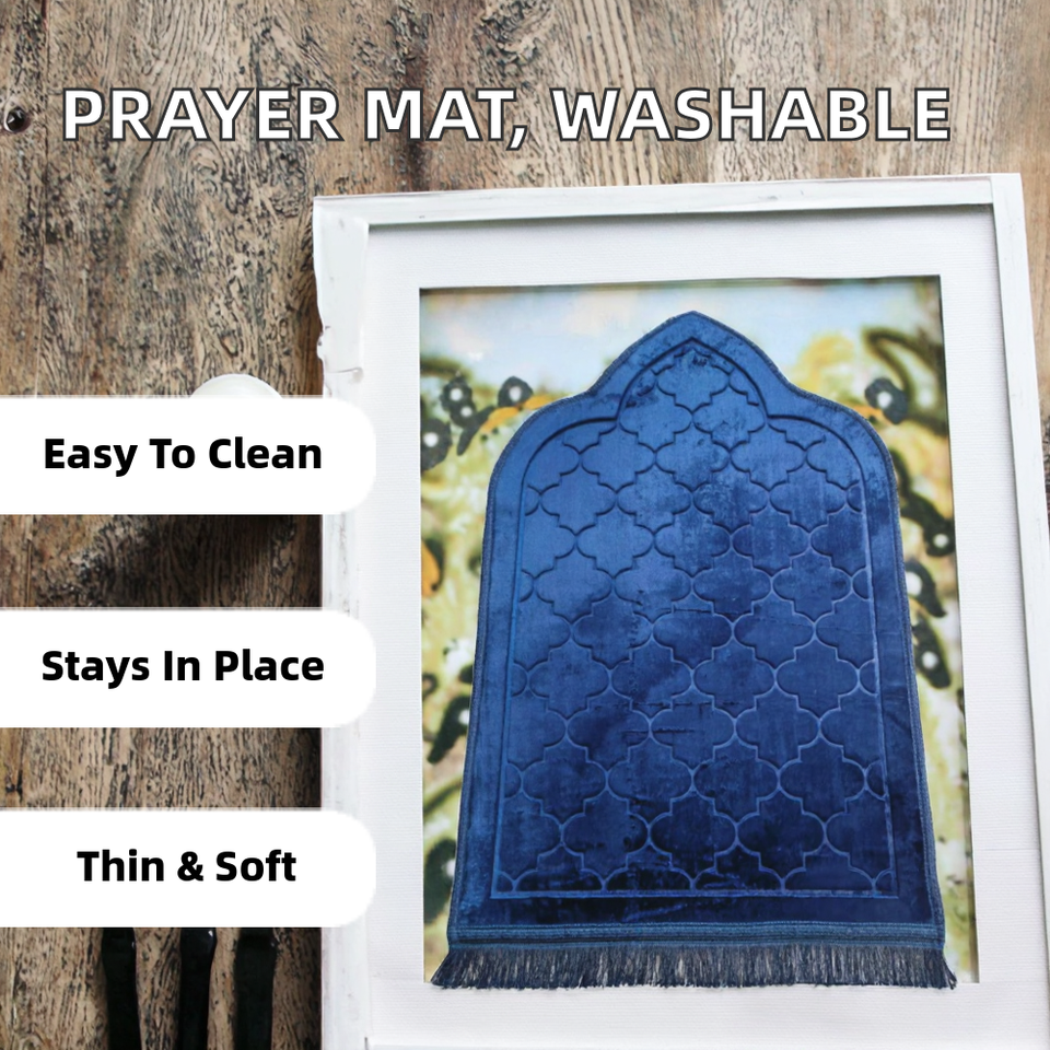 Tappetino da Preghiera Islamico Personalizzato in Morbido Poliestere Raschel, Set Regalo per Casa e Viaggio, Realizzato a Macchina