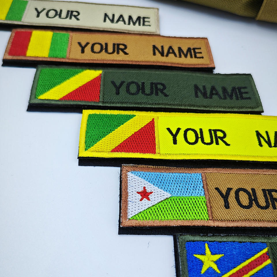 Targhette con nome personalizzate nomi uniformi con toppe ricamate toppe di pizzo in tessuto di ferro accessori uniformi del paese africano