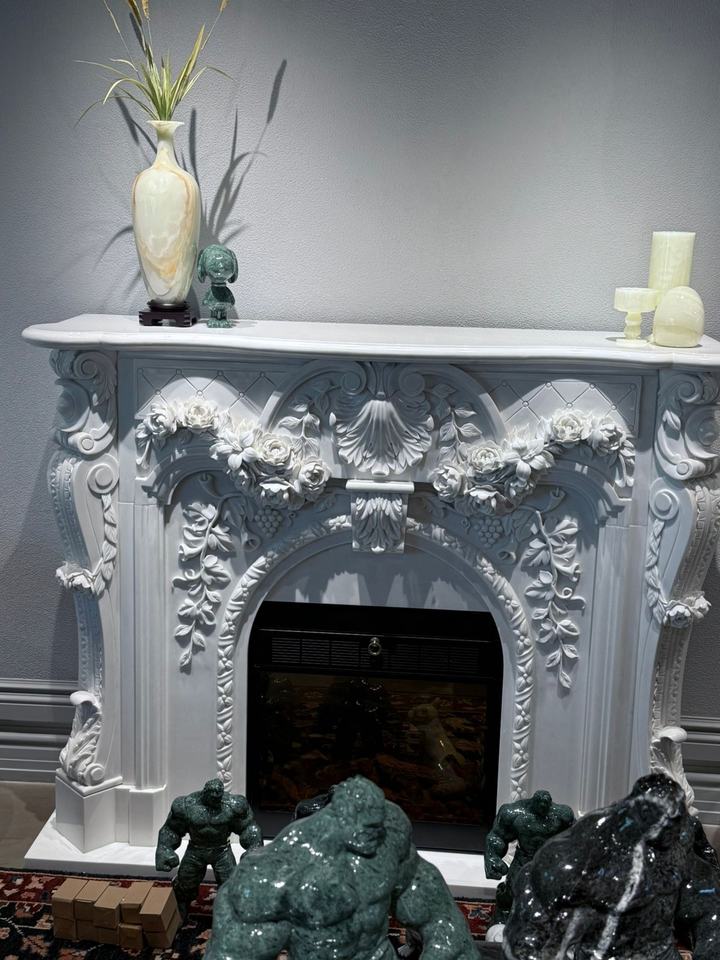 Caminetto in marmo bianco intagliato a mano