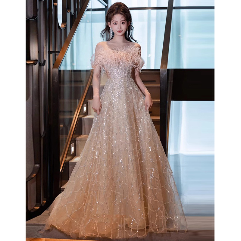 Customized New Bride Wedding Party Dress French One-shoulder Evening Vestidos Graduation Robe Women Ceremony Prom Dresses