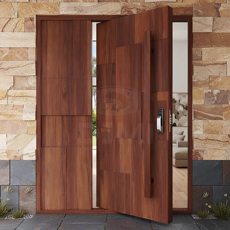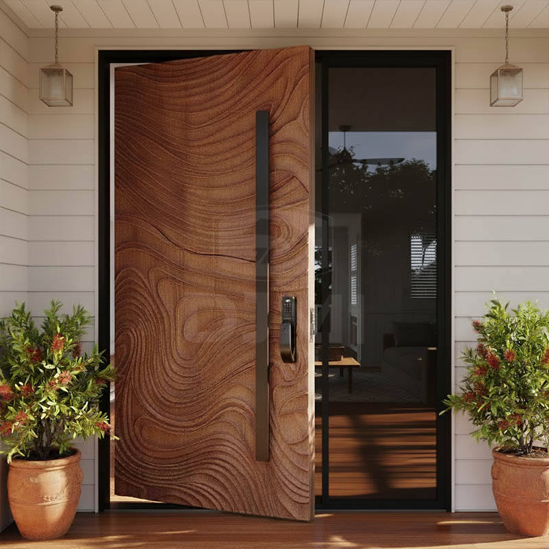 Porte Pivotanti in Legno Massello Personalizzate per Villa Moderna, Nuove Porte di Sicurezza Frontali per Ingresso Principale