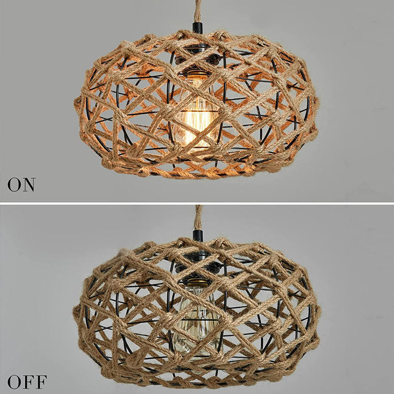 Su misura nuovi prodotti creativi corda di canapa lampadario a sfera a sospensione lampada a forma di canna