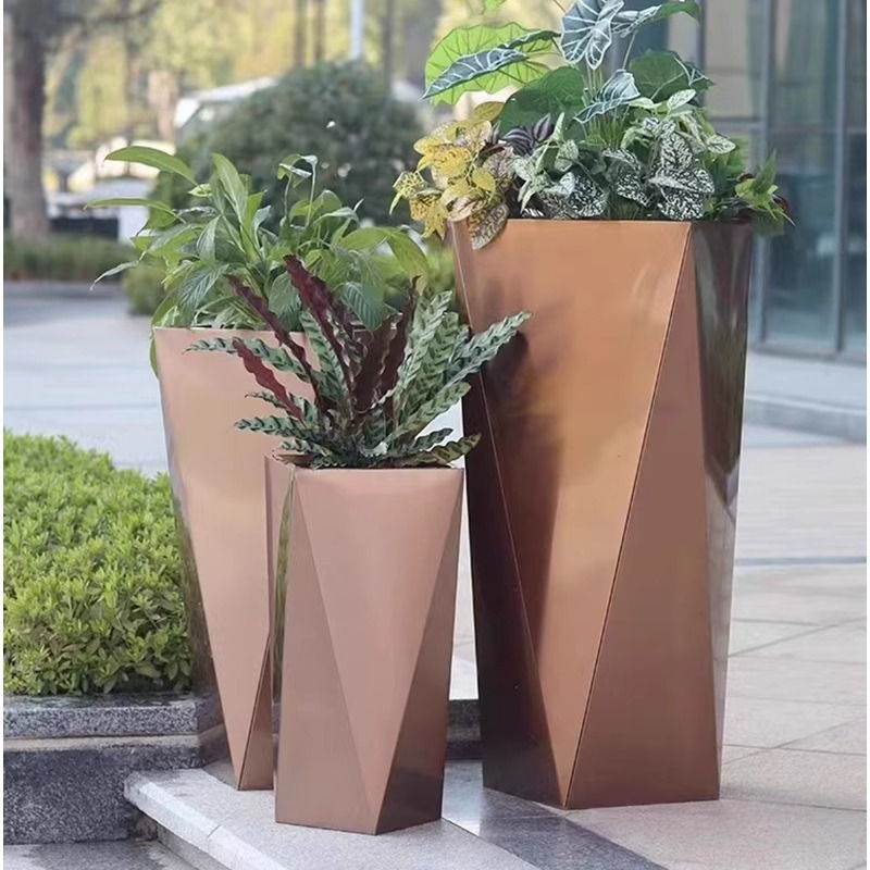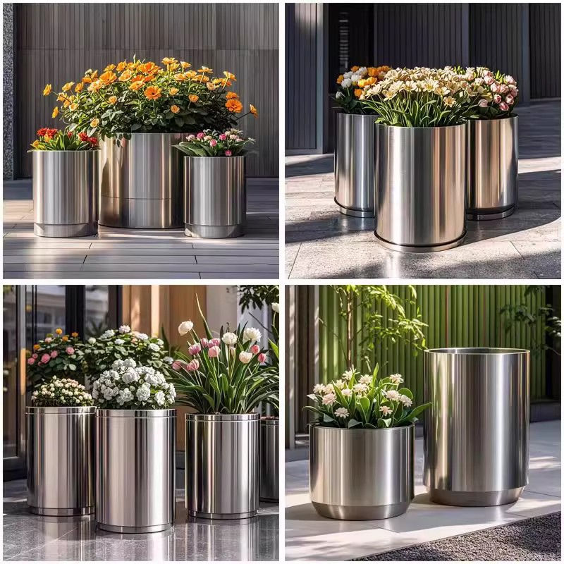 Set di fioriere in acciaio inossidabile con stampa di mercato all'aperto personalizzato Set di piantine in metallo Patio all'aperto