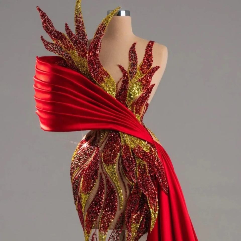 Abito da Sposa Personalizzato Plus Size Rosso Stile Sirena per un Look Chic