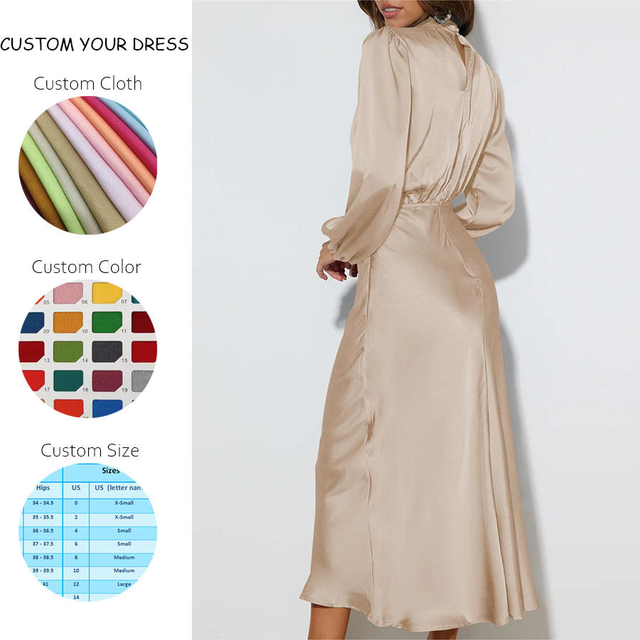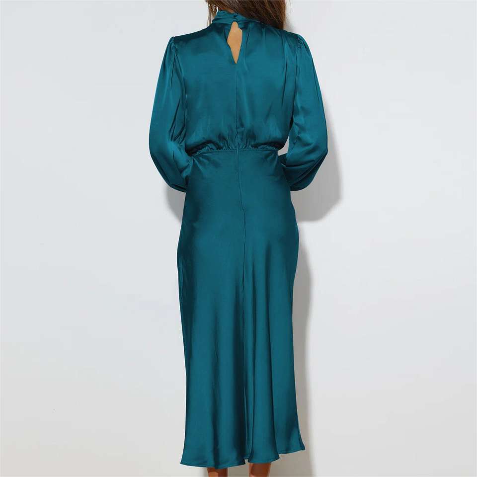 Abito personalizzato in poliestere estivo a vita alta in tinta unita abito Casual Color verde smeraldo Maxi manica lunga a sbuffo