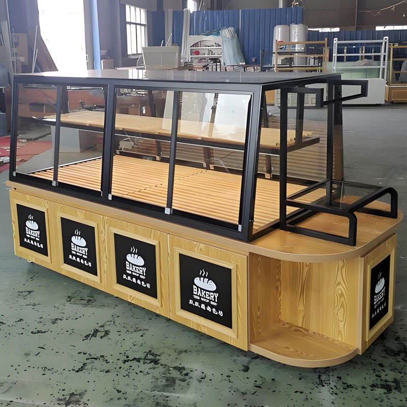 Armadi da esposizione per panetteria Premium personalizzati in vetro con illuminazione a LED in legno per pasticcerie da forno Premium