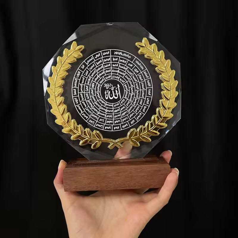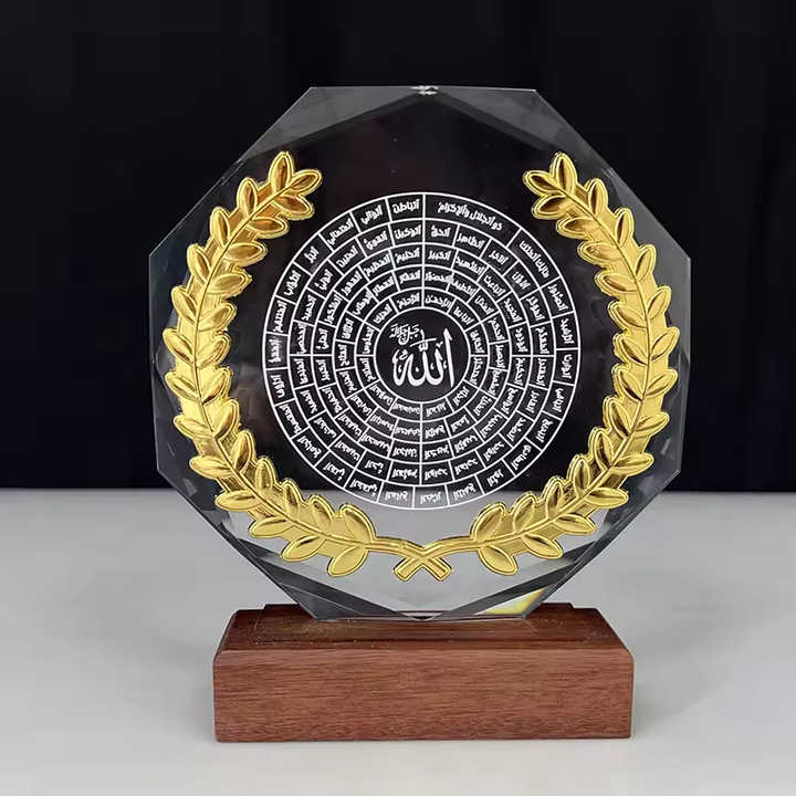 Nome articolo:99 nomi della placca musulmana di cristallo Allah con foglia di metallo oro