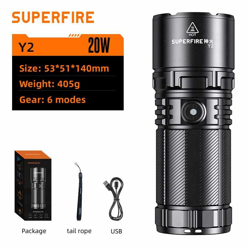 Set completi: torcia elettrica + scatola + manuale + tipo-C + corda + batteria
